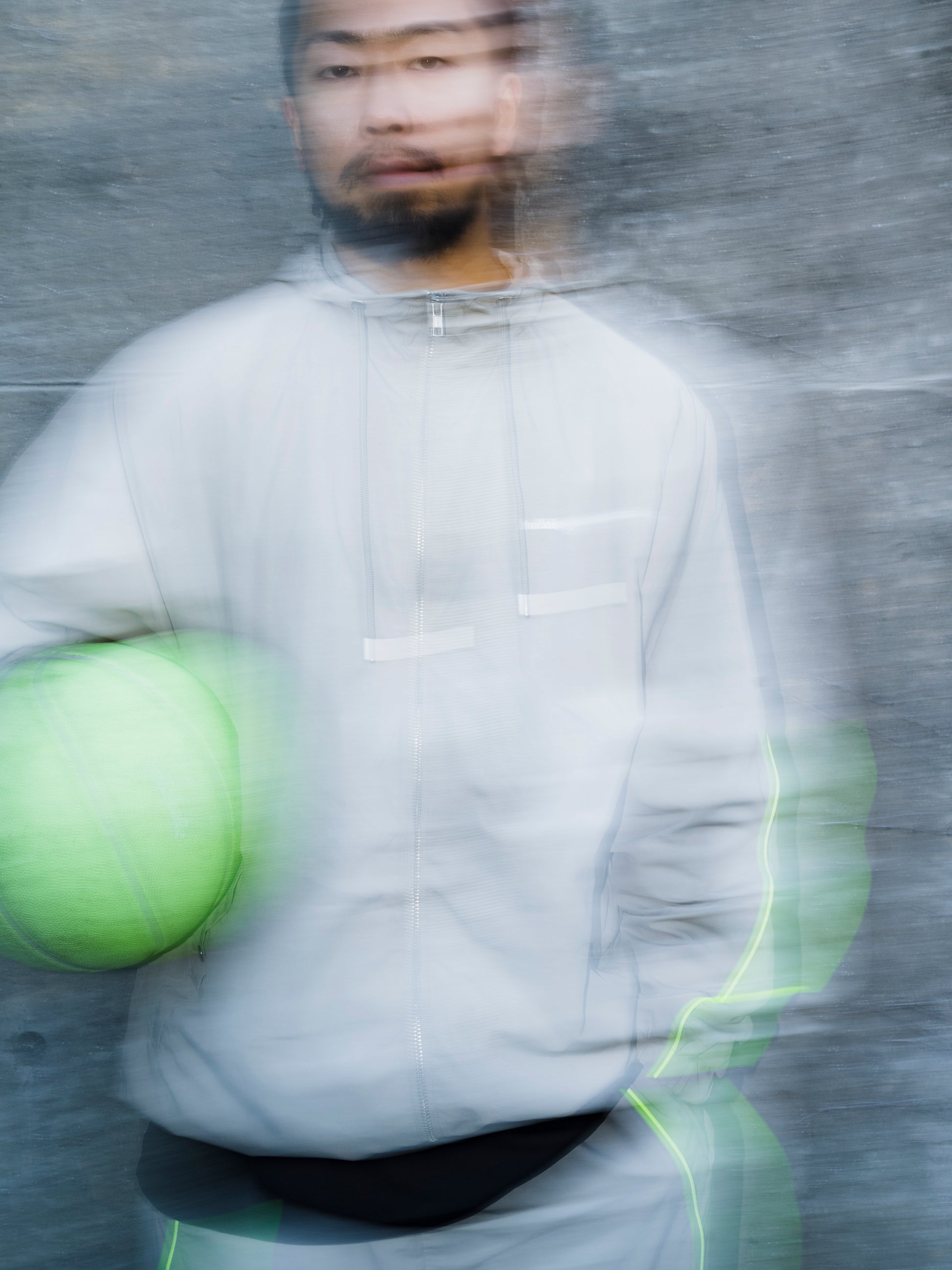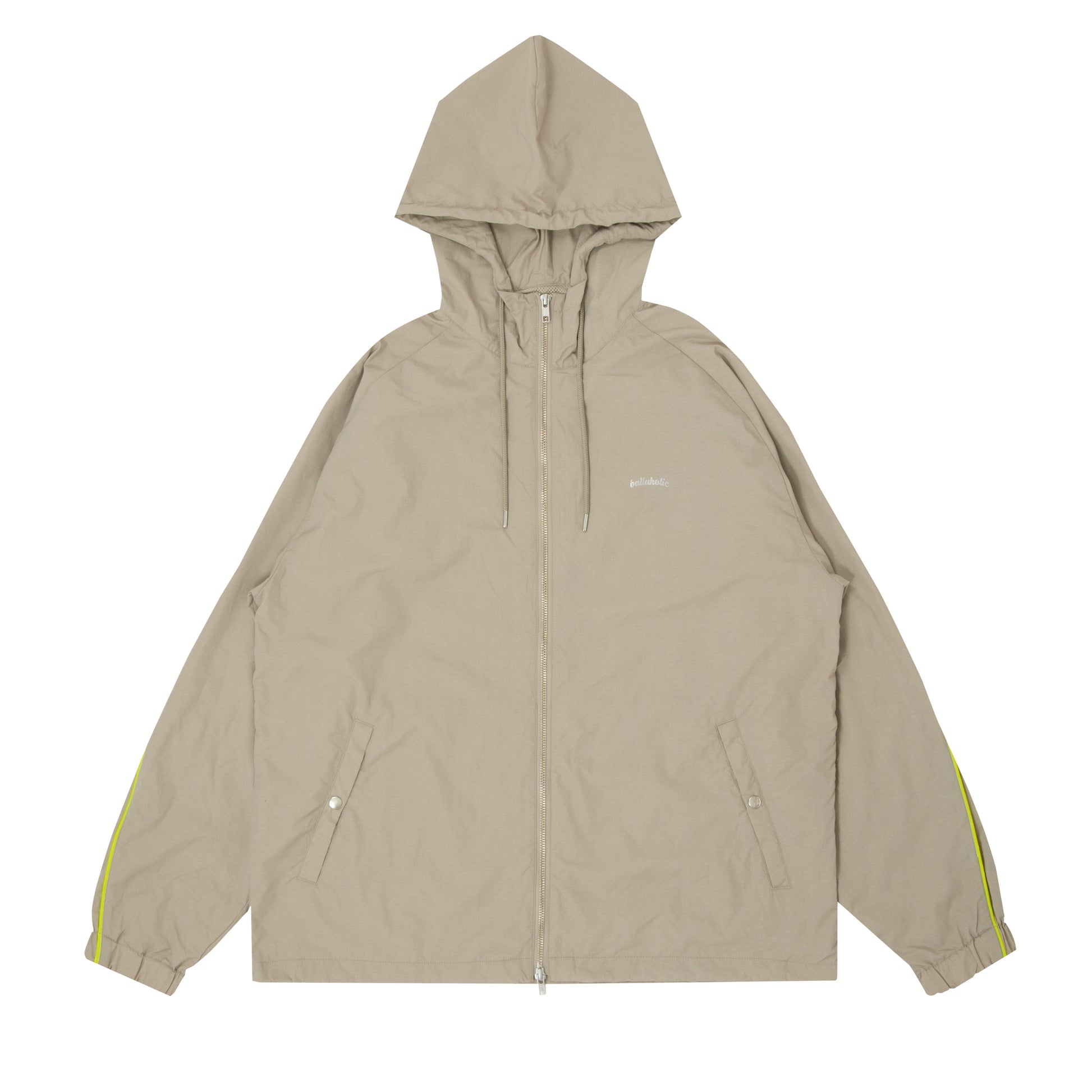 Front : 左胸ballaholic Logoリフレクタープリント、ダブルジップ、2ボタンポケット